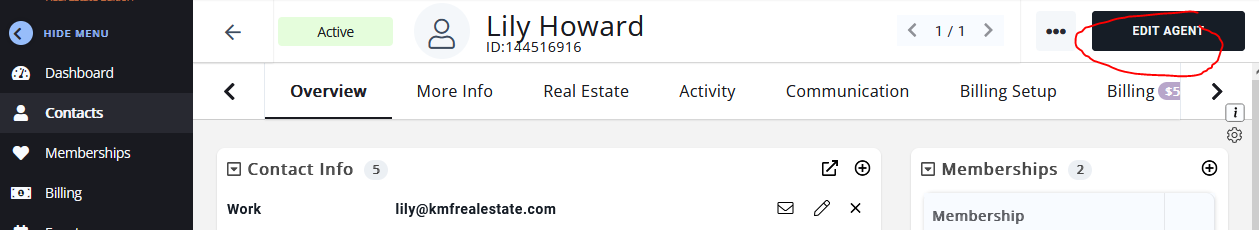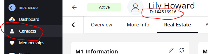 I did a search for them in the Contact section of the database and opened there Real Estate Tab