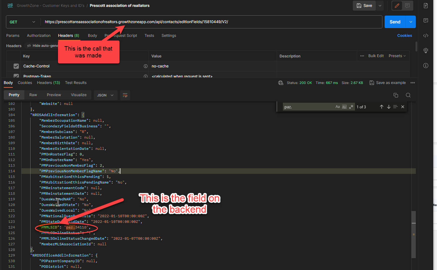 Normally We are looking for a MLS ID of some type but can be hard to tell what that field actually is on the backend of the database so we need to check with Postman