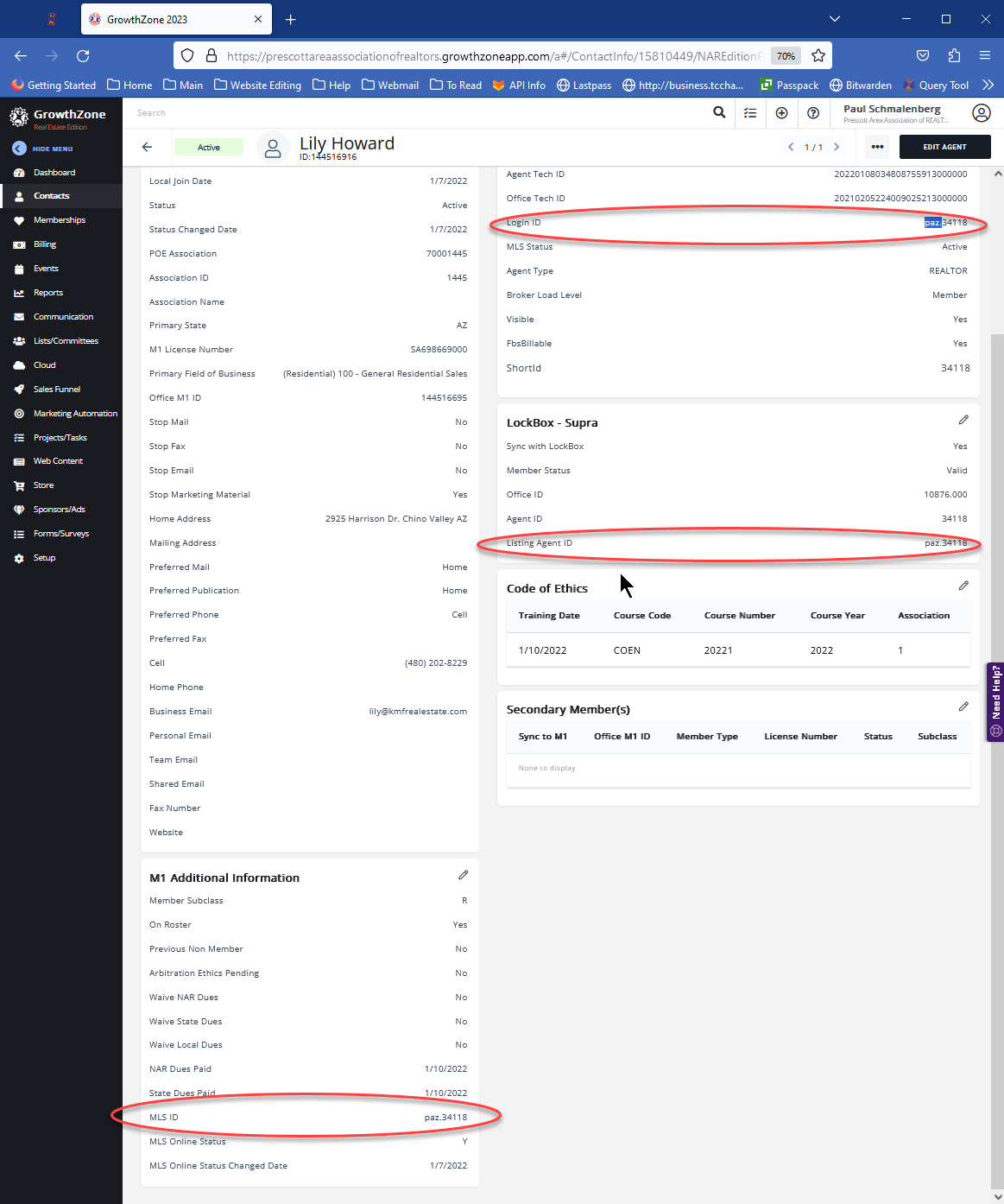 They wanted to match to the loginid and that was paz.34118 And the Contacts name was Lily Howard