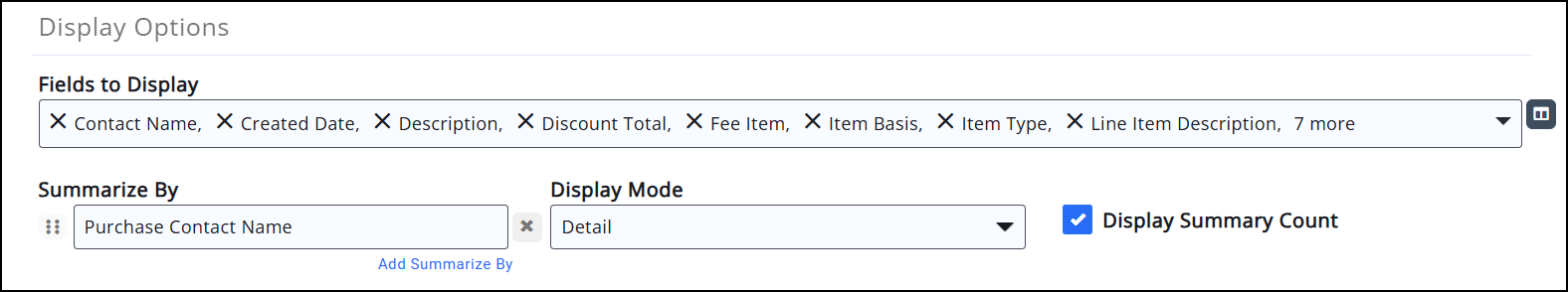 3. In the Fields to Display, use the drop-down arrow to select Purchase Contact Name.