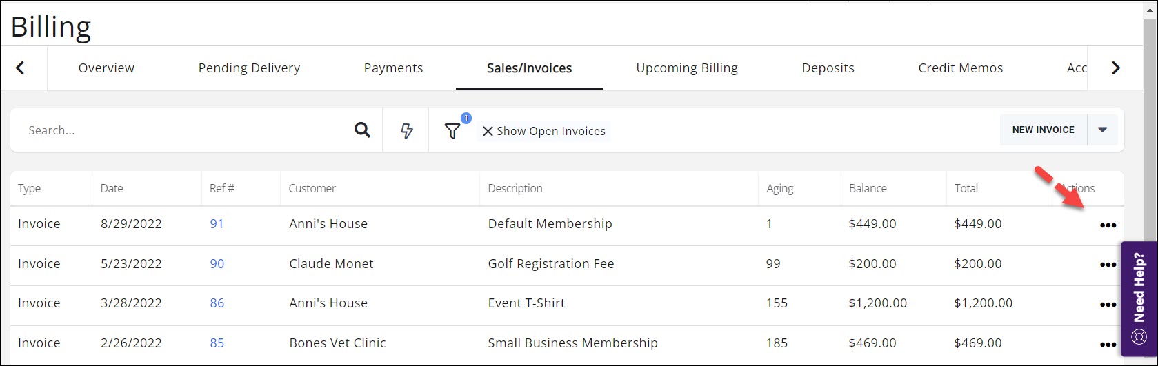 - From the Billing module Sales/Invoices tab click the