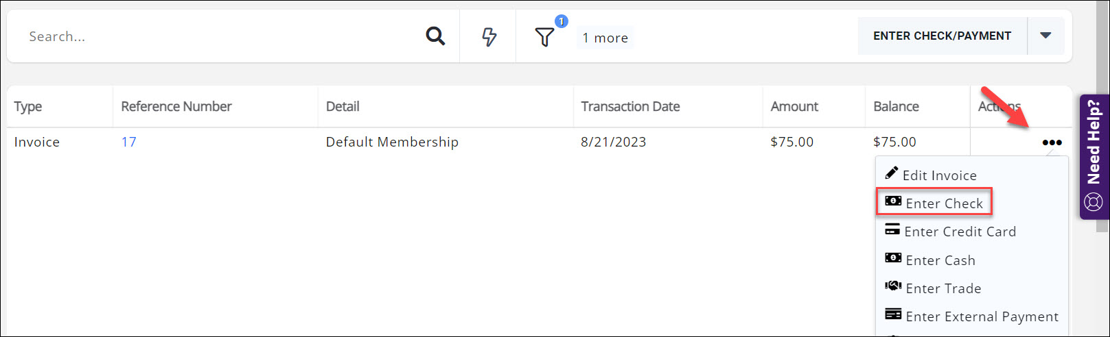 - Amount: The invoice against which you wish to apply payment is automatically selected and the full amount of the invoice will be displayed by default. You can select additional invoices, and the system will total those invoices. You may also change the amount if needed. NOTE: If you have enabled Allow Partial Payments, you will be able to over-ride the amount of the invoice and pay more or less. When a partial payment is received, the payment will be applied to the largest item first. See Prevent Members from Making Partial Payments