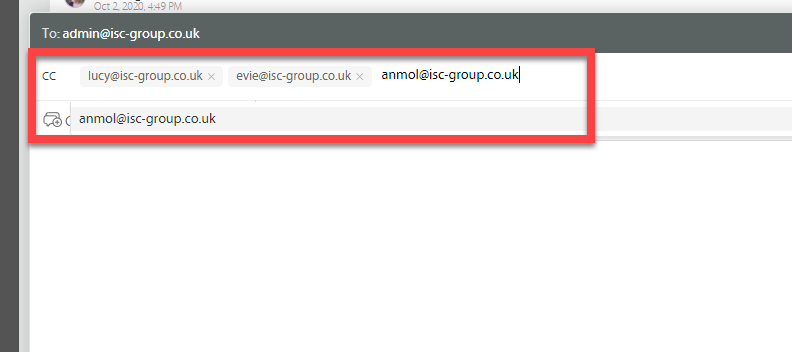 This opens the CC field and allows you to paste in an email and search for existing Contacts:
