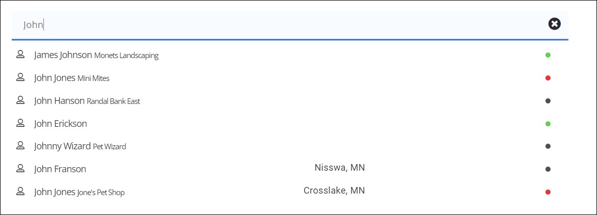 By each search result you will see a dot at the far right indicating their status.