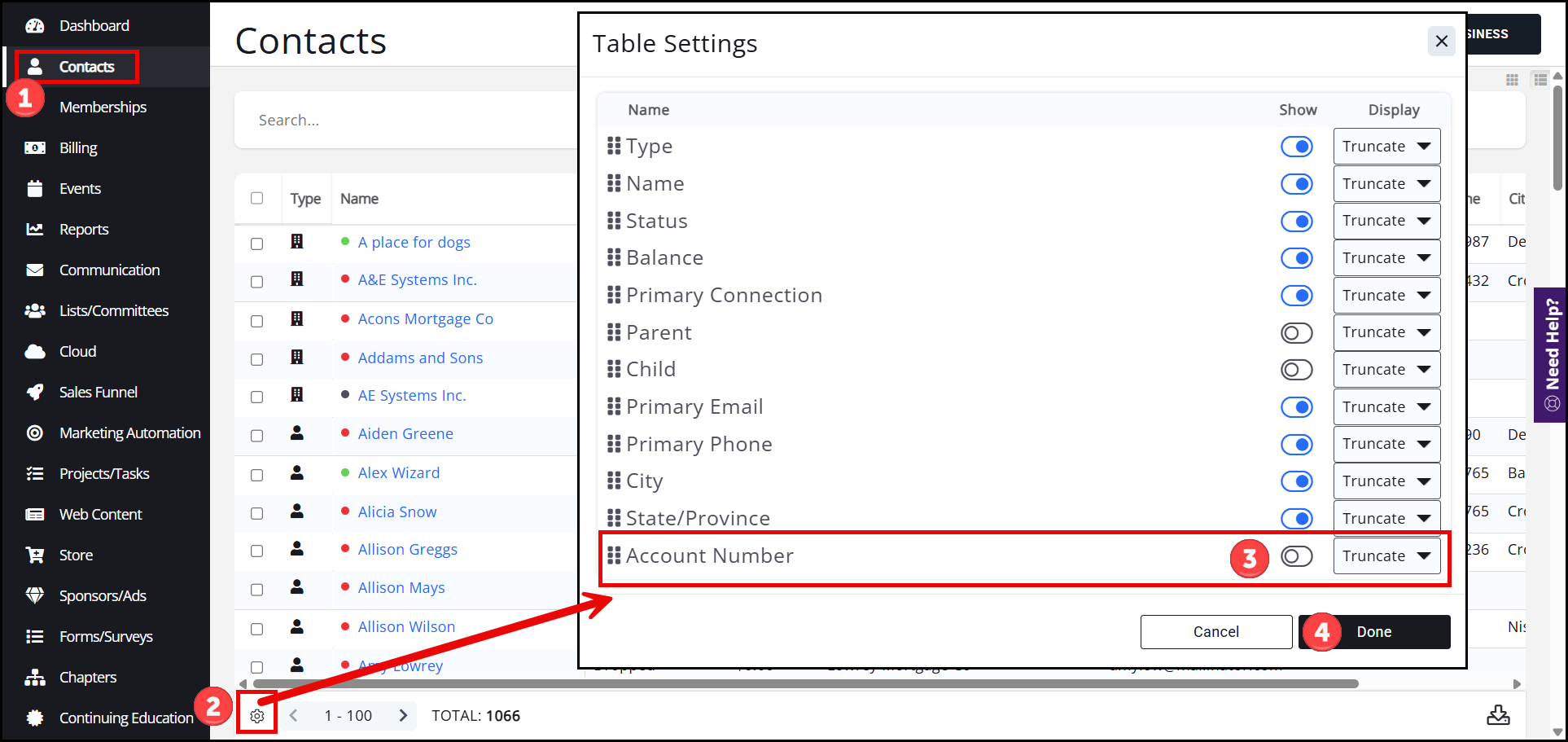 - Enable the Account Number column.