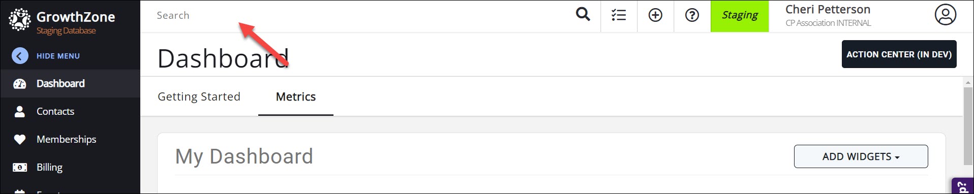 You can search for any contact in the system by using the global search bar at the top of the window. Matching records- individuals, events, businesses, even files- will appear in the selection box as you type.