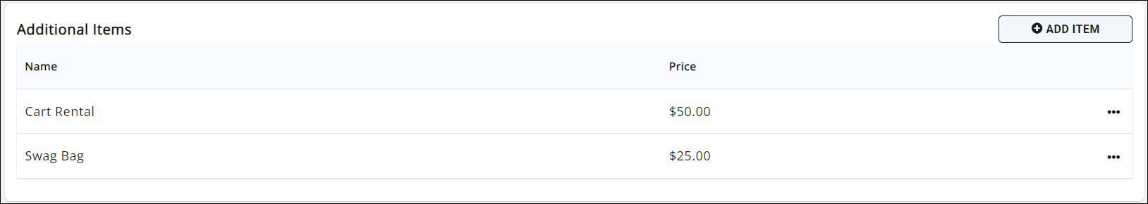 You can include optional additional items for sale in your event. To add an item, click the "Add Item" button.
