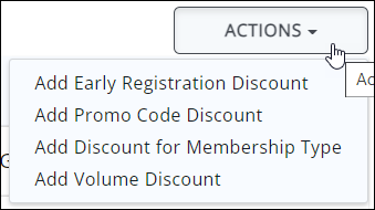 To add a new discount, click "Actions" and select the preferred discount type.