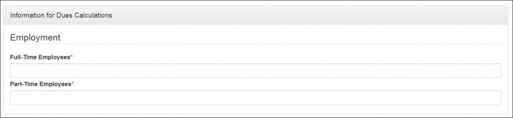 When an applicant selects a membership type that includes variable dues, on the second page of the Membership Application for, a section called Information for Dues Calculations will be displayed. These are the custom fields you created as numeric input to the dues formula. Based on the input into these fields, the system will calculate the appropriate dues.