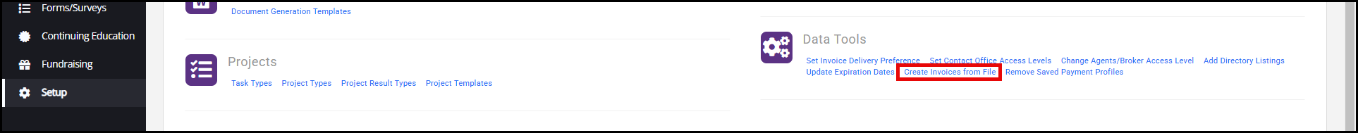 - Go to Setup -> Data Tools -> Create Invoices from File.