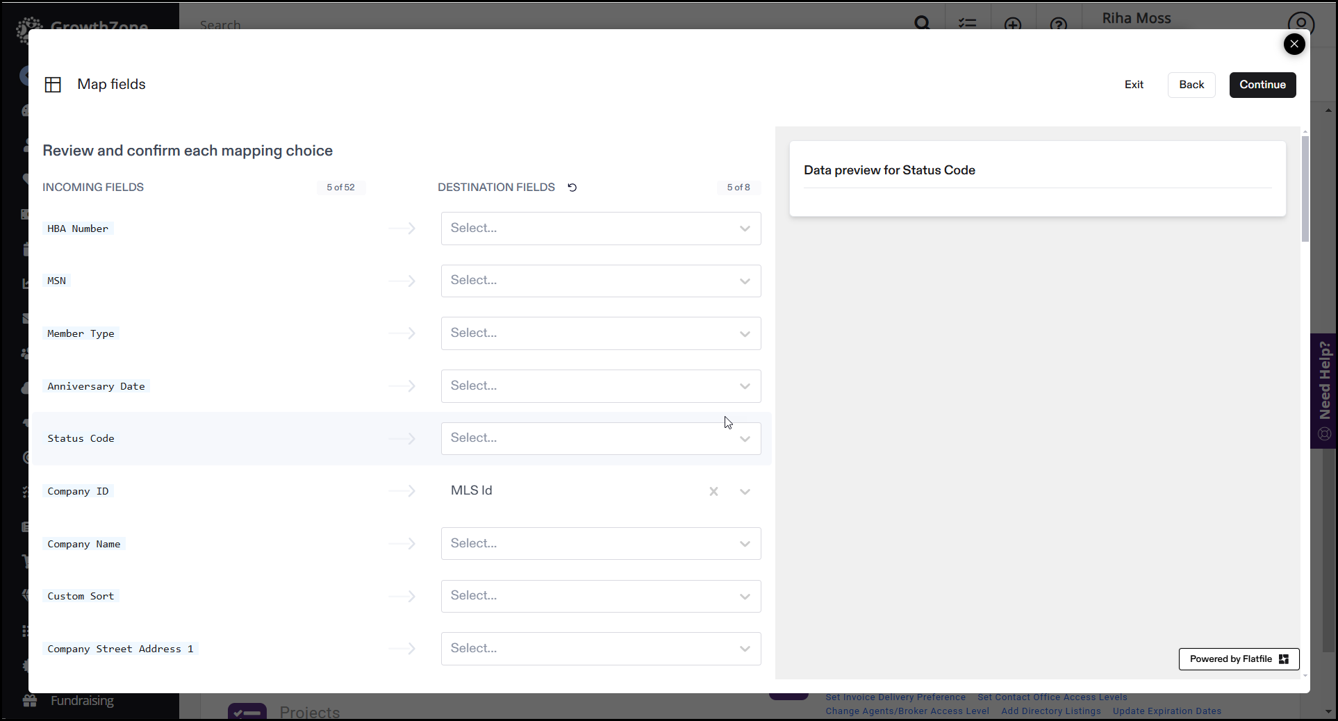- If needed, select the appropriate column mappings. Be sure to map the fee item on the invoice import file to an existing fee item in your database!
