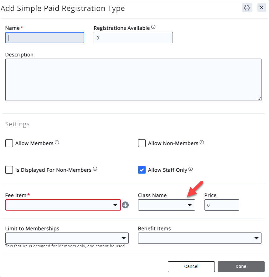 In addition, classes may be assigned any where a Fee Item is used such as Membership Type setup or Event Registration setup (V2 only). This ensures that, when invoices are automatically generated, Fee Item are appropriately classified.