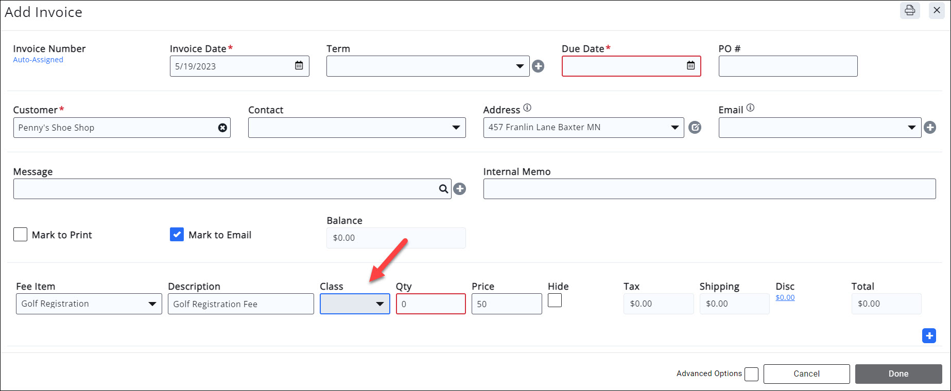 NOTE: Discounts automatically use the same class that is assigned to the line item you are discounting. For example, if you have Western Region assigned as the Class name on the golf registration item, any discount against the golf registration would also have Wester Region assigned as the class automatically.