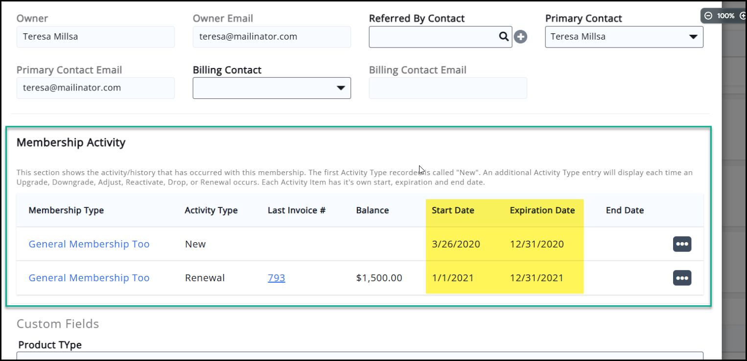 Membership Activation Start Date: This will be the date range for the most recent activation.