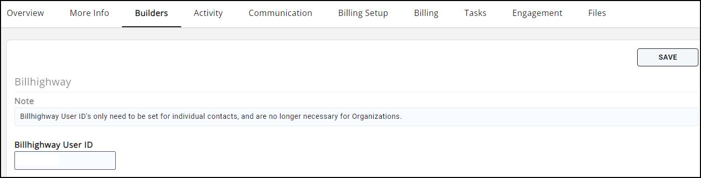 - Builders Tab (on an Individual Contact Card) - must show the User ID