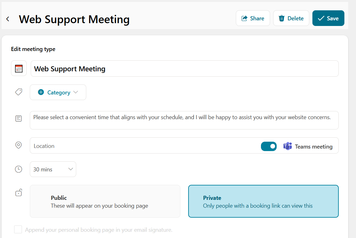 - A system that allows us to send a Bookings invite to customers for them to select an available time and day for a Teams meeting. Instead of going back and forth through emails trying to figure out a day and time.