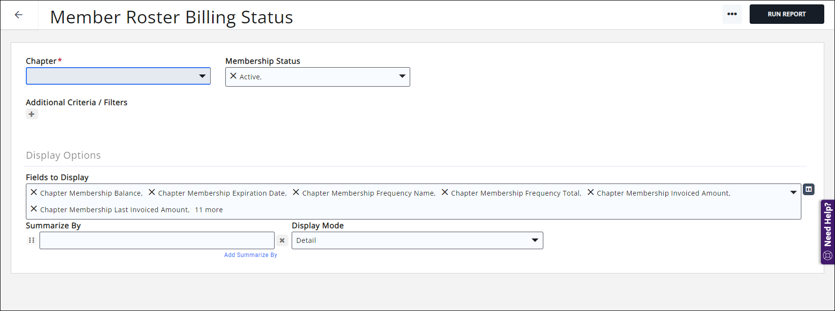 - Click Member Roster Billing Status. NOTE to easily locate reports, click Chapter in the Show Only drop-down list.