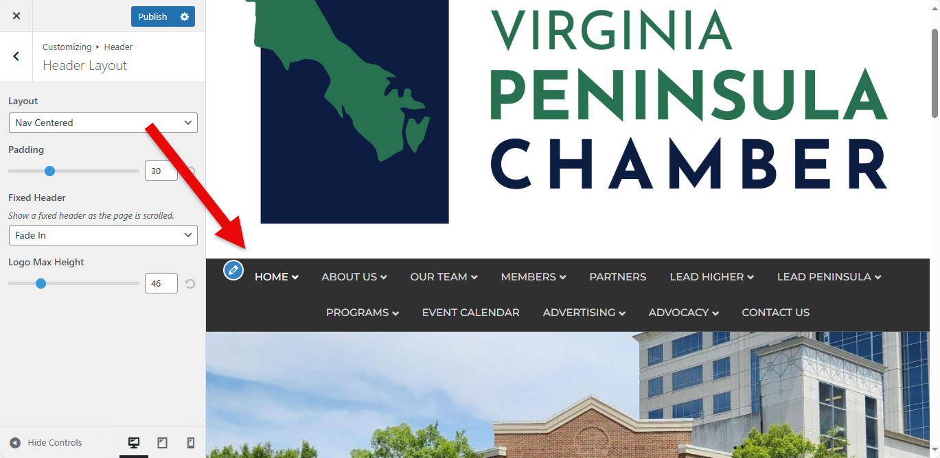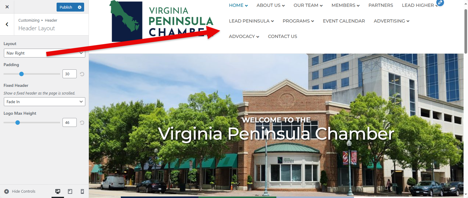 Next, navigate to HEADER > HEADER LAYOUT then adjust the LAYOUT dropdown accordingly.