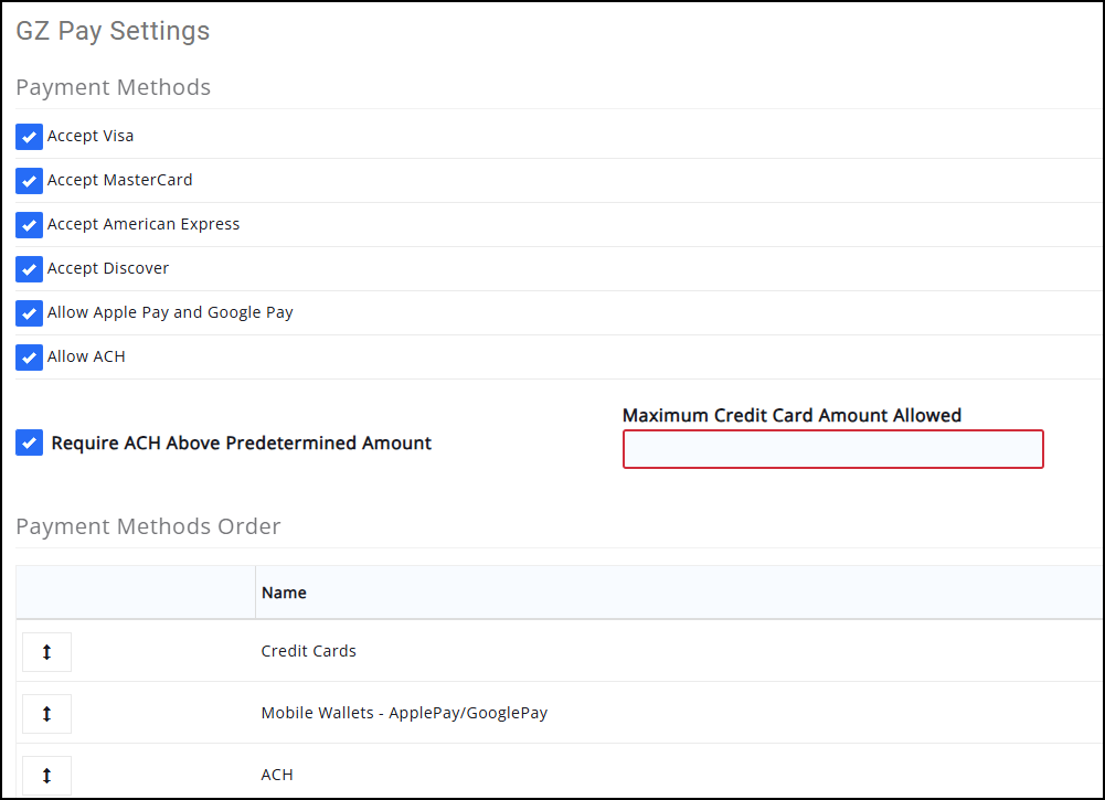 Adjust your GZ Pay settings. For more information, see the GZ Pay Settings article.